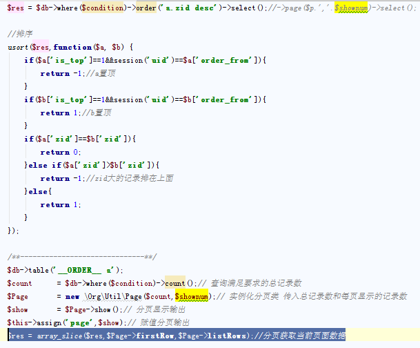 排序结束后,如分页后再输出到页面显示,则使用array_slice进行获取部分数组的数据.